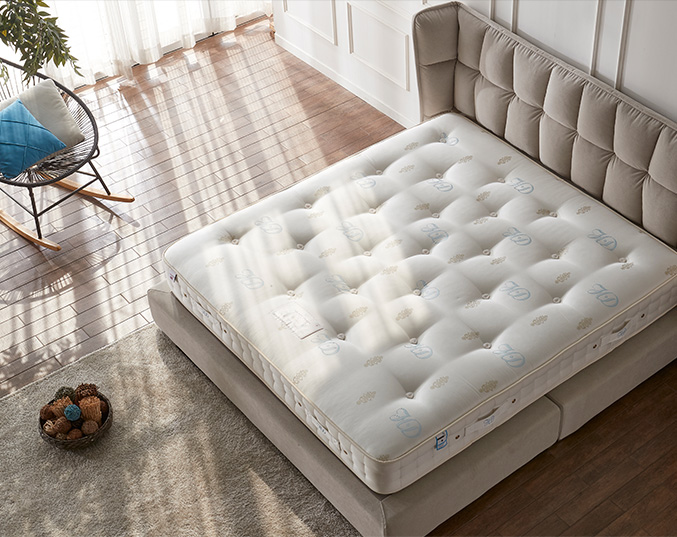 얇은 모직 구조로 다른 소재와 달리 무게가 가벼우며, 다채롭고 풍부한 컴포트를 제공합니다. 또한 쉽게 뜯어지지 않고 질겨 내구성이 뛰어나며, 항상 쾌적한 수면 환경을 제공 하기 때문에 최고급 매트리스 내 자재 소재 중 하나입니다.